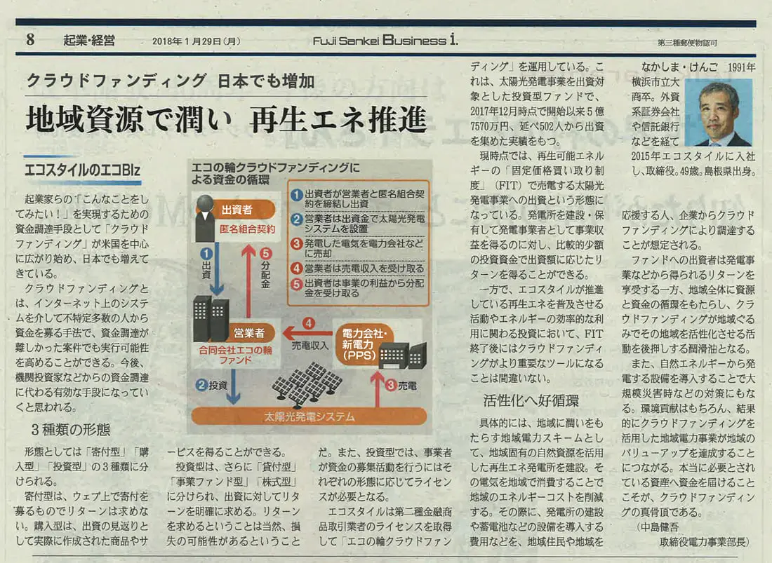 フジサンケイビジネスアイ 2018年1月29日(月)掲載