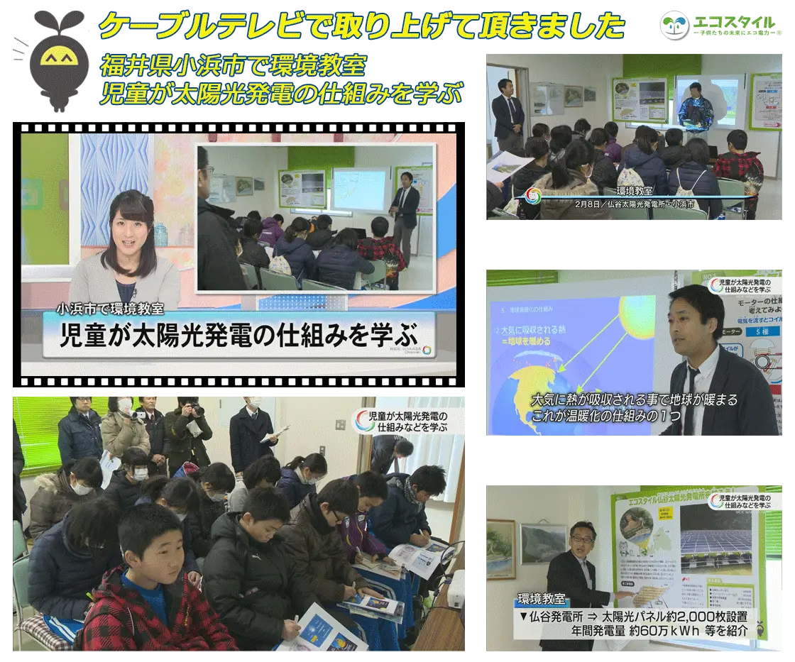 福井県小浜市で環境教室を開催、児童が太陽光発電の仕組みを学ぶ様子を地元のケーブルテレビで取り上げて頂きました。