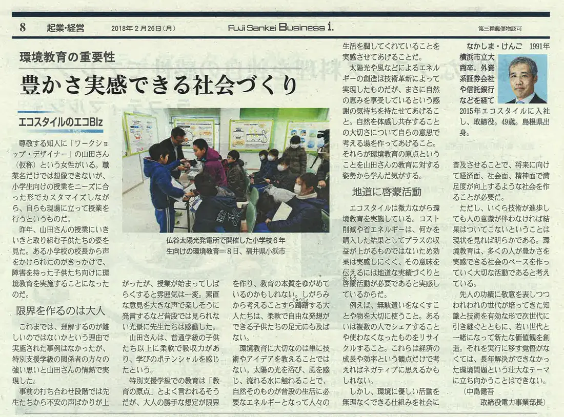フジサンケイビジネスアイ 2018年2月26日(月)掲載