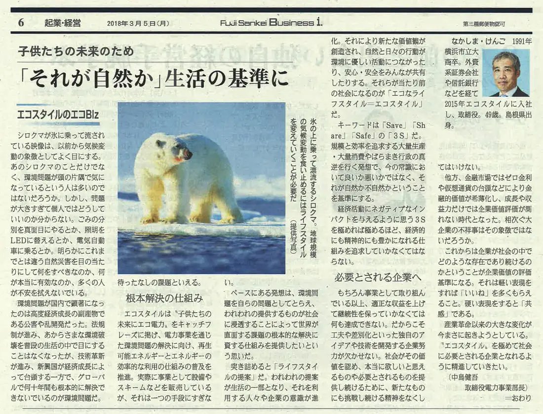フジサンケイビジネスアイ 2018年3月5日(月)掲載