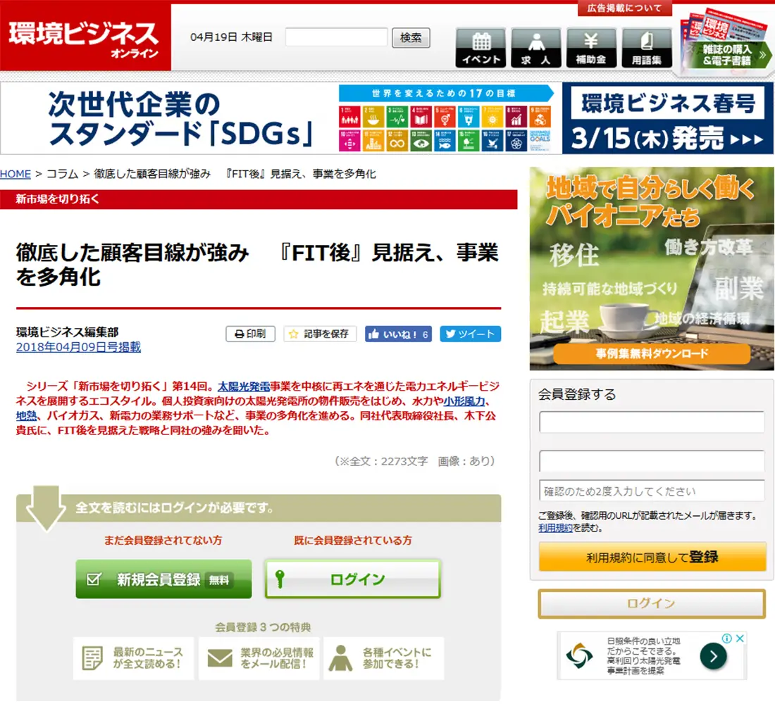 環境ビジネスオンライン 2018年4月9日(月)掲載