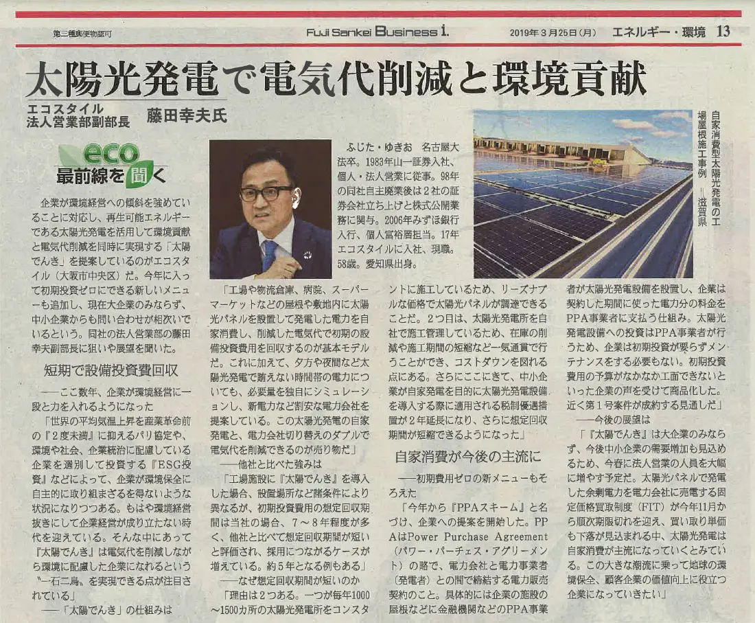 フジサンケイビジネスアイ紙面 2019年3月25日(月)掲載