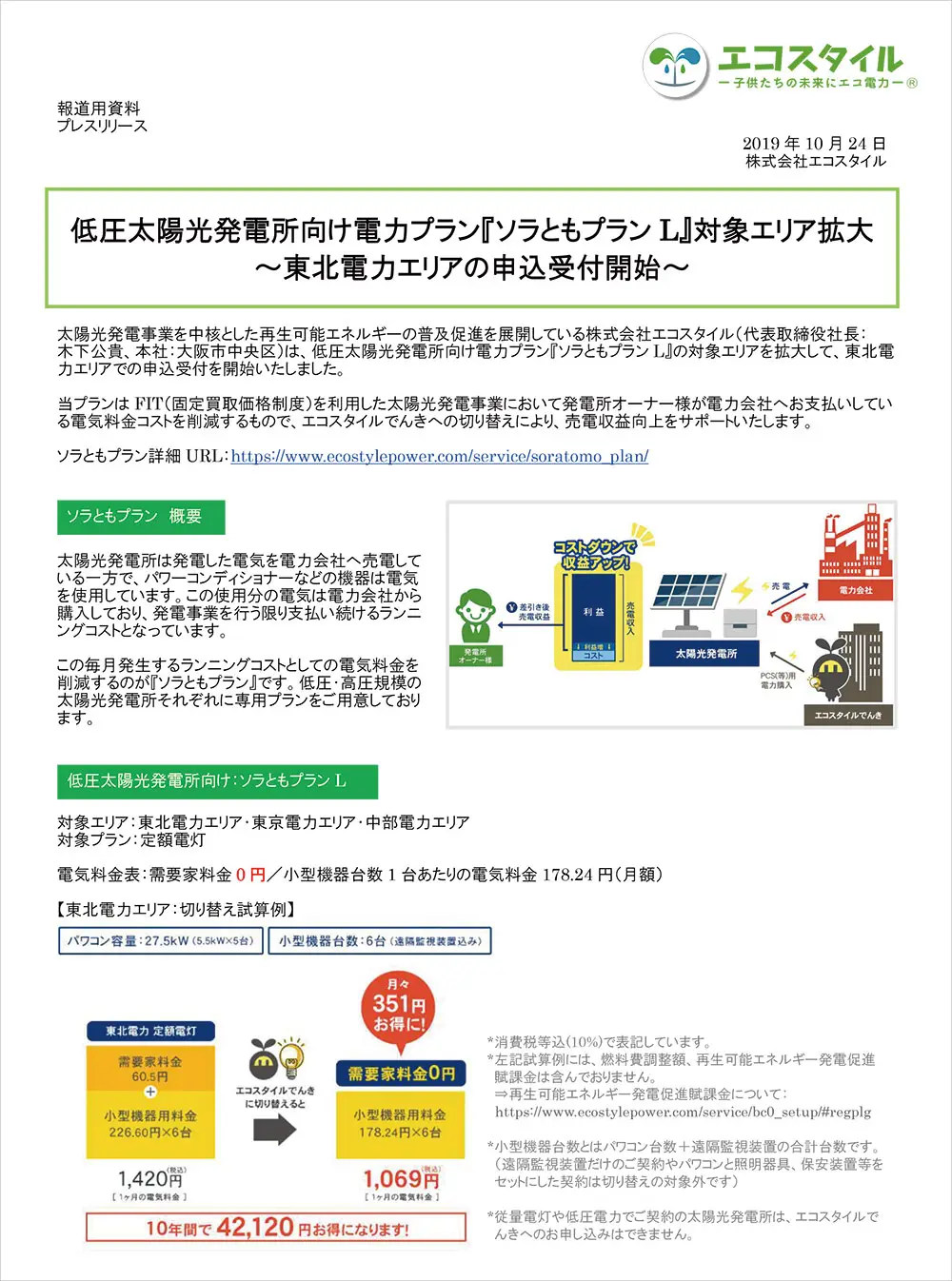 低圧太陽光発電所向け電力プラン『ソラともプランL』対象エリア拡大