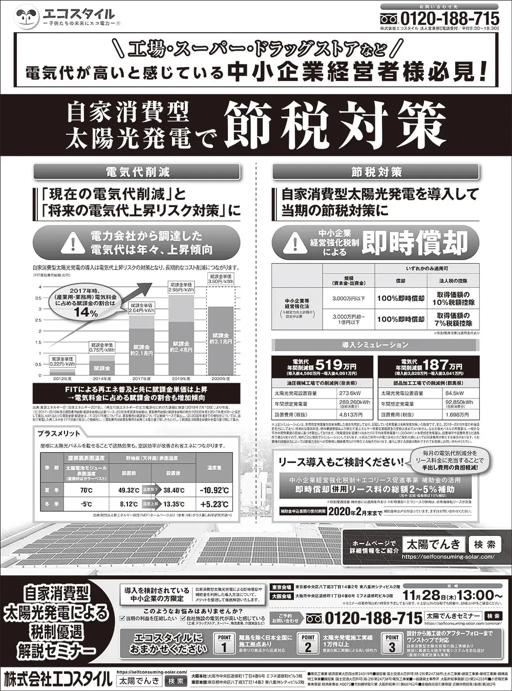 日経新聞(全国版) モノクロ全15段広告 2019年11月18日(月)掲載