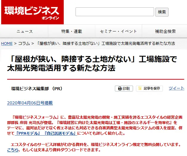 環境ビジネスオンライン 2020年4月6日(月)
