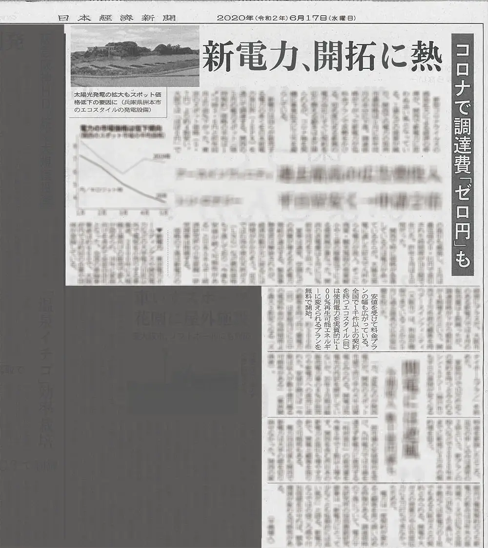 新電力、コロナで0円調達・関西に割安ステイホーム料金(日本経済新聞)