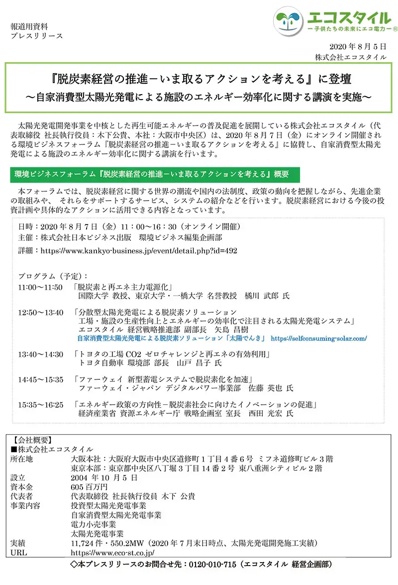 環境ビジネスフォーラム『脱炭素経営の推進-いま取るアクションを考える』に登壇