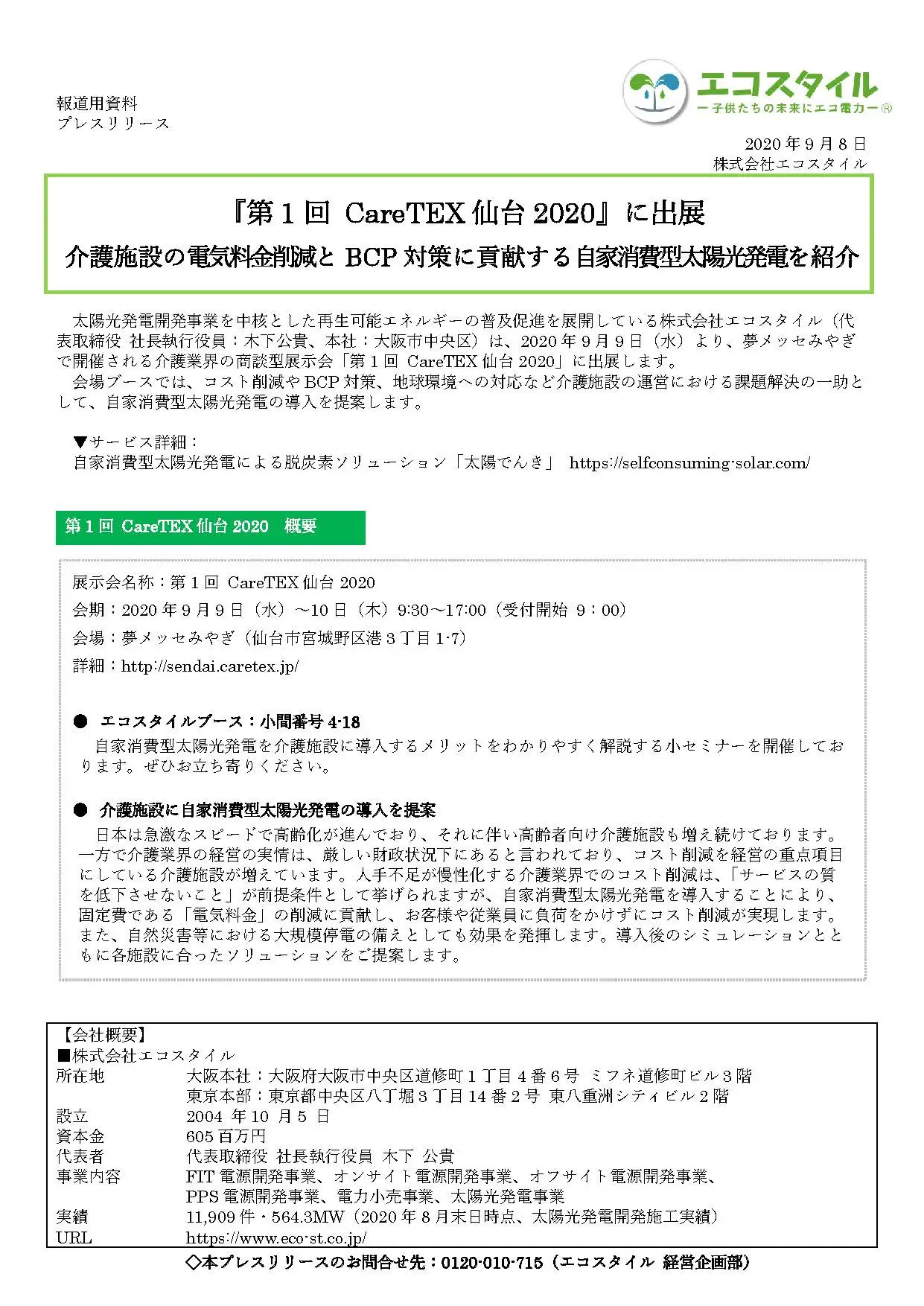 『第1回 CareTEX仙台2020』に出展 介護施設の電気料金削減とBCP対策に貢献する自家消費型太陽光発電を紹介