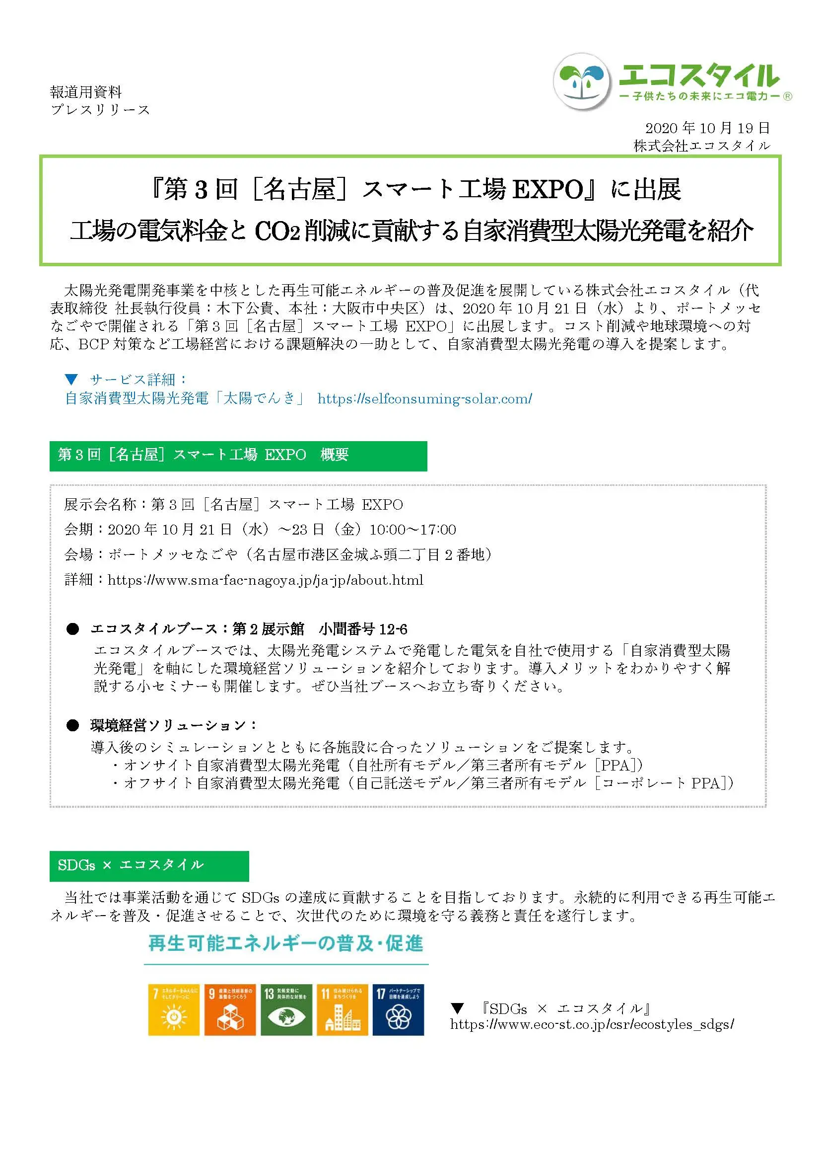 『第3回[名古屋]スマート工場EXPO』に出展 工場の電気料金とCO2削減に貢献する自家消費型太陽光発電を紹介