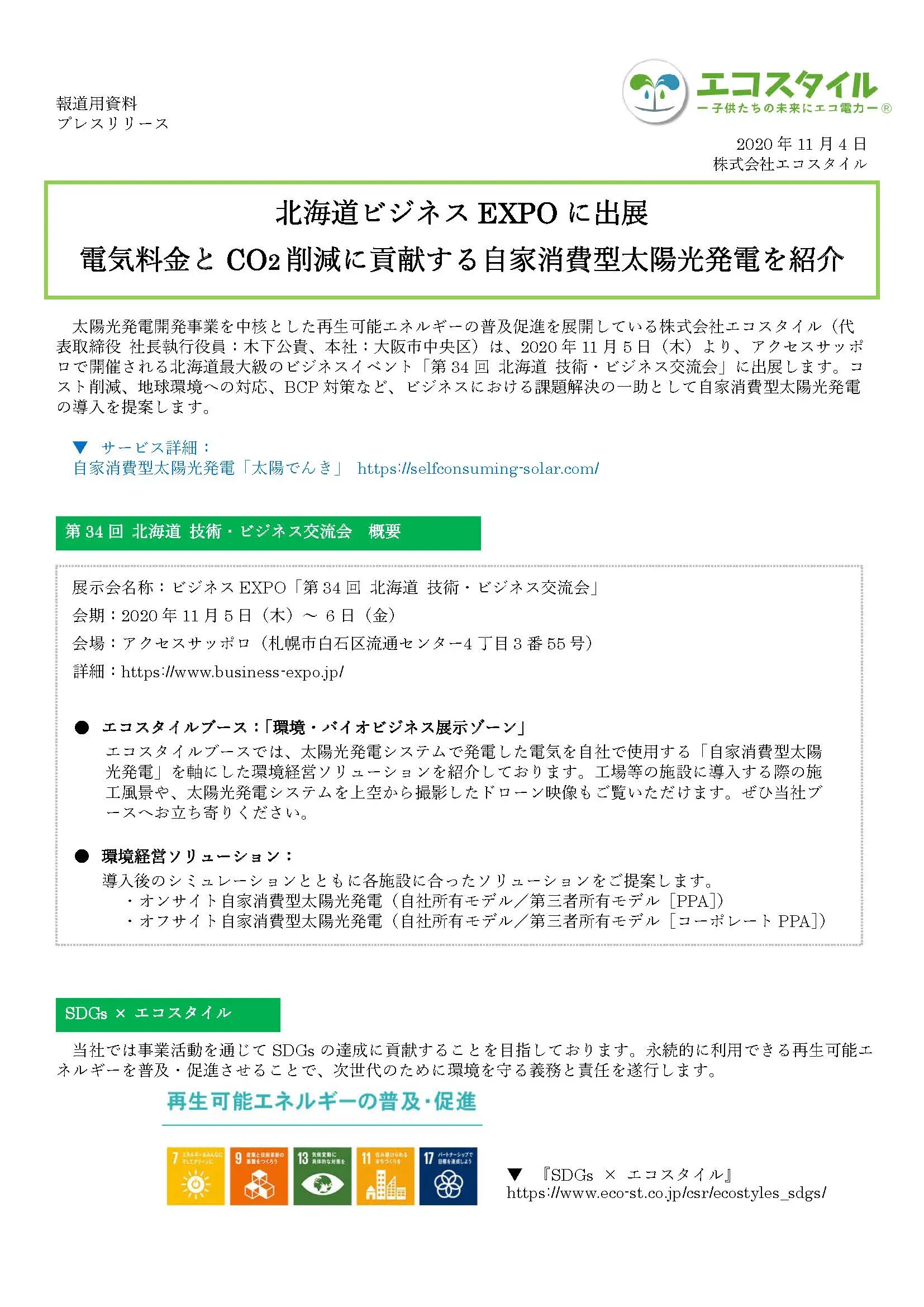 北海道ビジネスEXPOに出展 電気料金とCO2削減に貢献する自家消費型太陽光発電を紹介