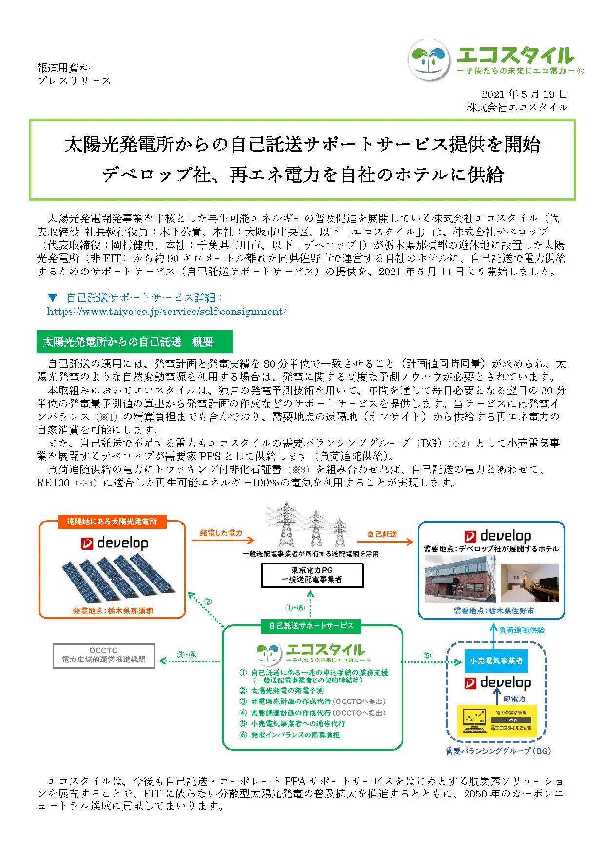太陽光発電所からの自己託送サポートサービス提供を開始 デベロップ社、再エネ電力を自社のホテルに供給