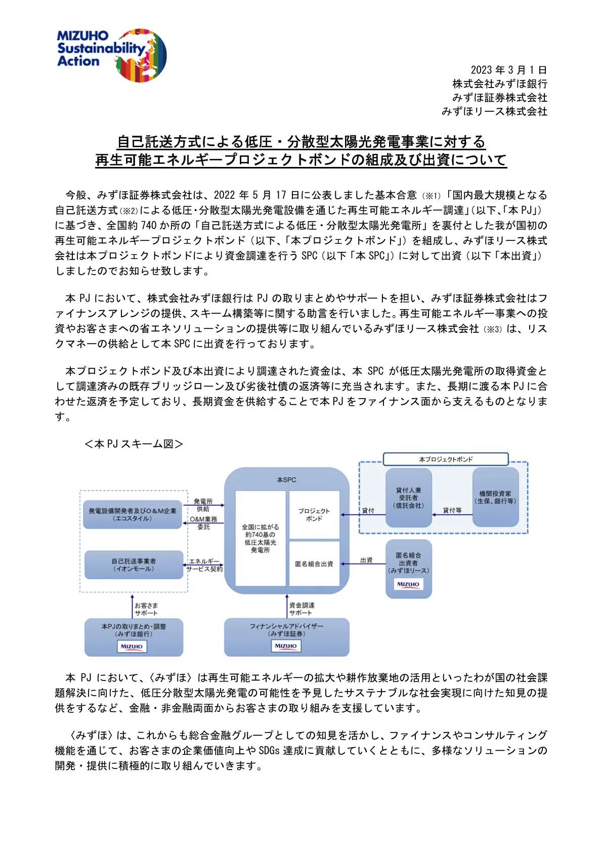 みずほ銀行HP 2023年3月1日掲載