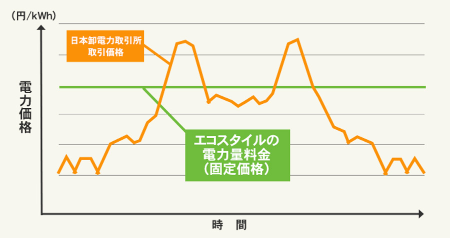 卸価格が市場によって変動する場合、市場の価格が安ければ利益をより稼ぐことができる反面、市場の高騰が続けば収益悪化に繋がる可能性があります。固定卸価格でのご利用の場合、予め取り決めた1kWhあたりの固定価格(年間契約)で電力を卸供給するため、期中での価格変動リスクはなく、事業計画が立てやすいといえます。