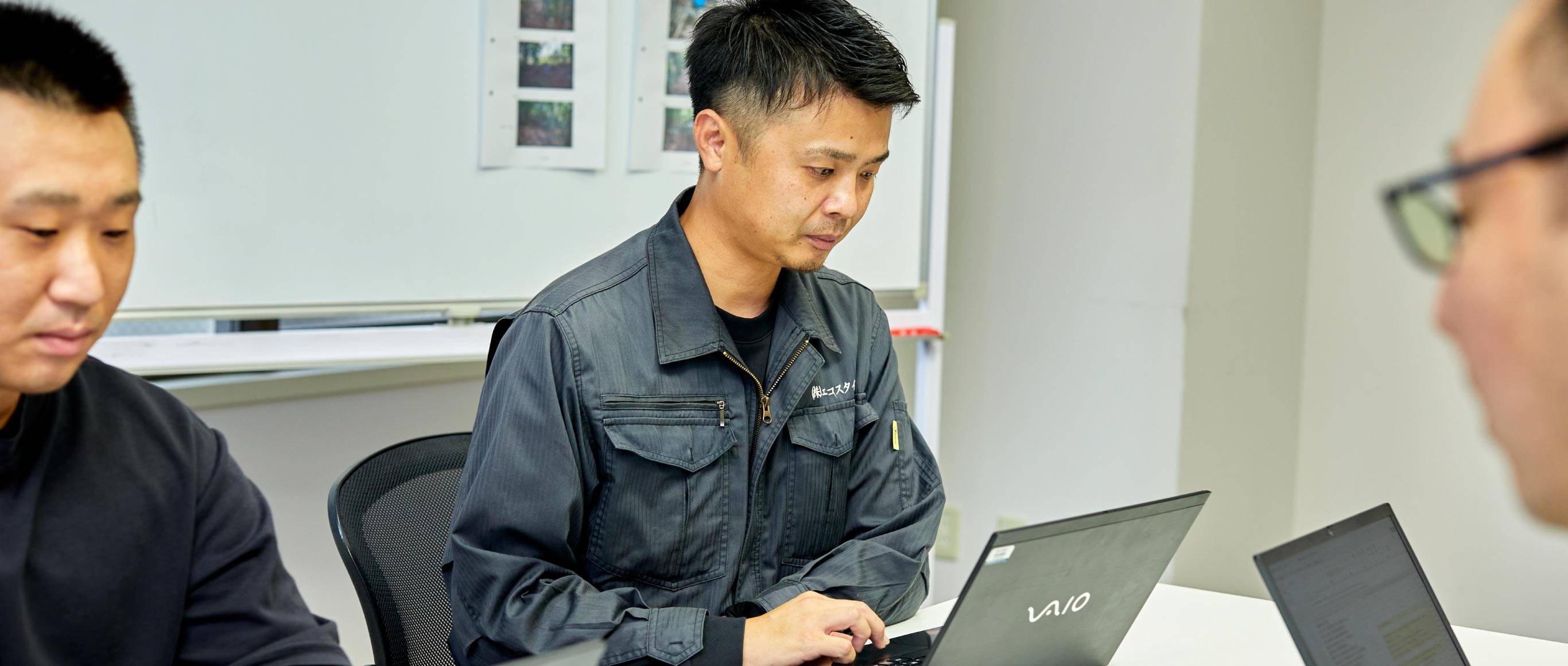DIY好きの家族の影響で、子供のころから物をつくるのが好きでした。就職活動でも〈ものづくりができる会社〉を志望し、エコスタイルを紹介されました。2014年ごろは、太陽光発電が普及しはじめた時期。太陽光発電所を目にすることが増え成長している業界だと感じましたし、当時は自社で施工していたため、すべての工程に関われるところにもやりがいを感じました。入社してからは、施工一筋。勤務地は福岡から千葉に変わりましたが、ずっと太陽光発電所をつくり続けています。